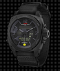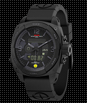 The MTM Black RAD includes a counter for detecting harmful ionizing radiation The Black RAD's integrated Geiger-Muller tube measures single - dose gamma ray levels, as well as cumulative exposure. The ultra- sensitive detector tracks dose equivalents - from 0.0001 to 9999 millisieverts (mSv), and the dose equivalent rate up to 4000 microsieverts per hour (Sv/h). Users can set their maximum radiation threshold, up to 9999 mSv, and an alarm will sound when this level (user preset) has been reached. Radiation levels are displayed graphically and can also be shown in the digital display, which can be switched between dose equivalent rate, accumulated dose, and the time. The time is shown via tritium illuminated analog hour, minute and second hands. The digital display is EL backlit. The MTM Black RAD is water resistant to 330' and powered by a lithium battery. The case is titanium and the rugged nylon band option fits wrists up to 9 inches in circumference. The RAD is a unique technical instrument with a limited edition total of 1000 pcs.
